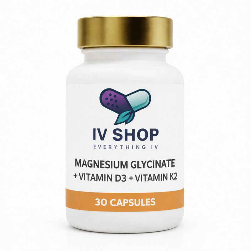 Magnesium Glycinate + Vitamin D3 + Vitamin K2 Capsules are a fixed-dose oral formulation designed to provide a combined supply of magnesium and fat-soluble vitamins within a single capsule. This product is supplied in a 30-capsule pack and is intended for professional wellness, nutritional, and educational contexts.